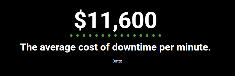 18.5 hours is the average time it takes a business to recover from a disaster, 43% of companies never totally recover, 51% close within two years, and a mere 10% survived over the long term.